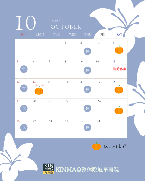 下記、10月の祝日営業日をお知らせさせていただきます。