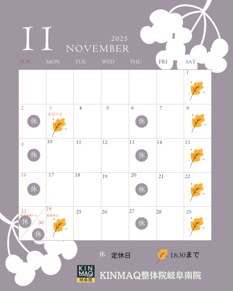 下記、11月の祝日営業日をお知らせさせていただきます。